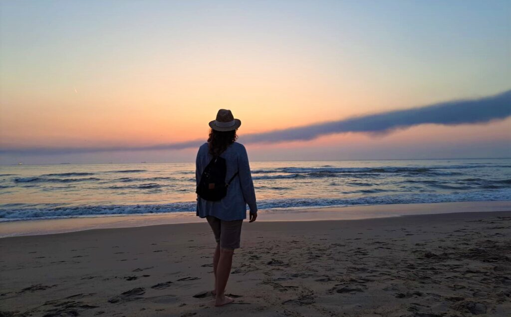 “Een zwoele zomeravond en Gedachten als korrels zand.”